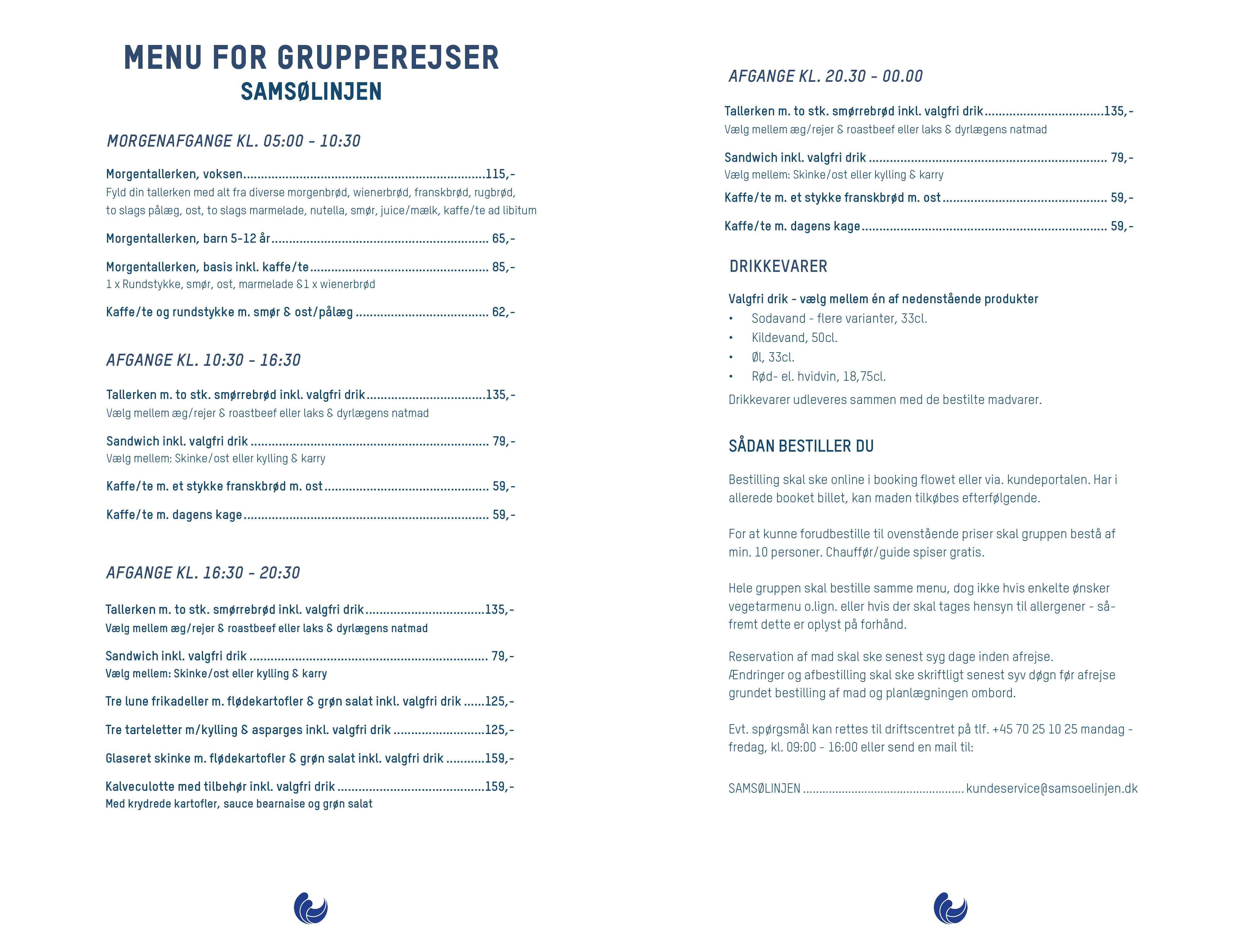 Ønsker I at annullere en bestilling, skal det ske senest fem dage før afrejse via mail: kundeservice@samsoelinjen.dk. Husk i det tilfælde at oplyse jeres reservationsnummer ifm. henvendelsen.